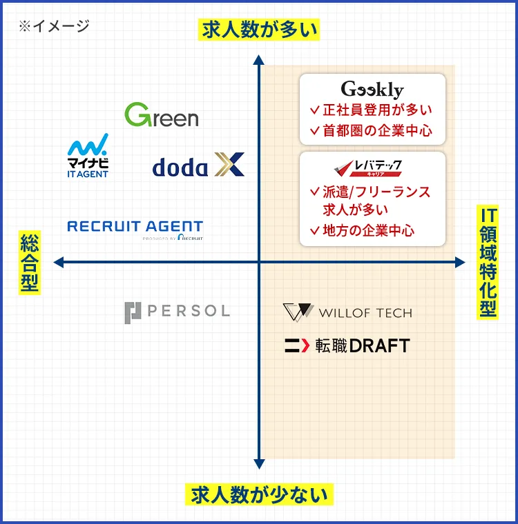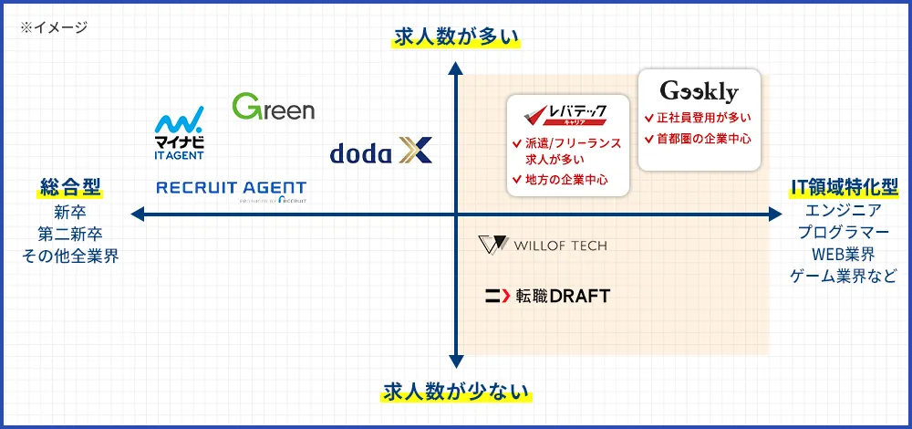 「IT領域特化型」転職サービスの特長(マップ右側)